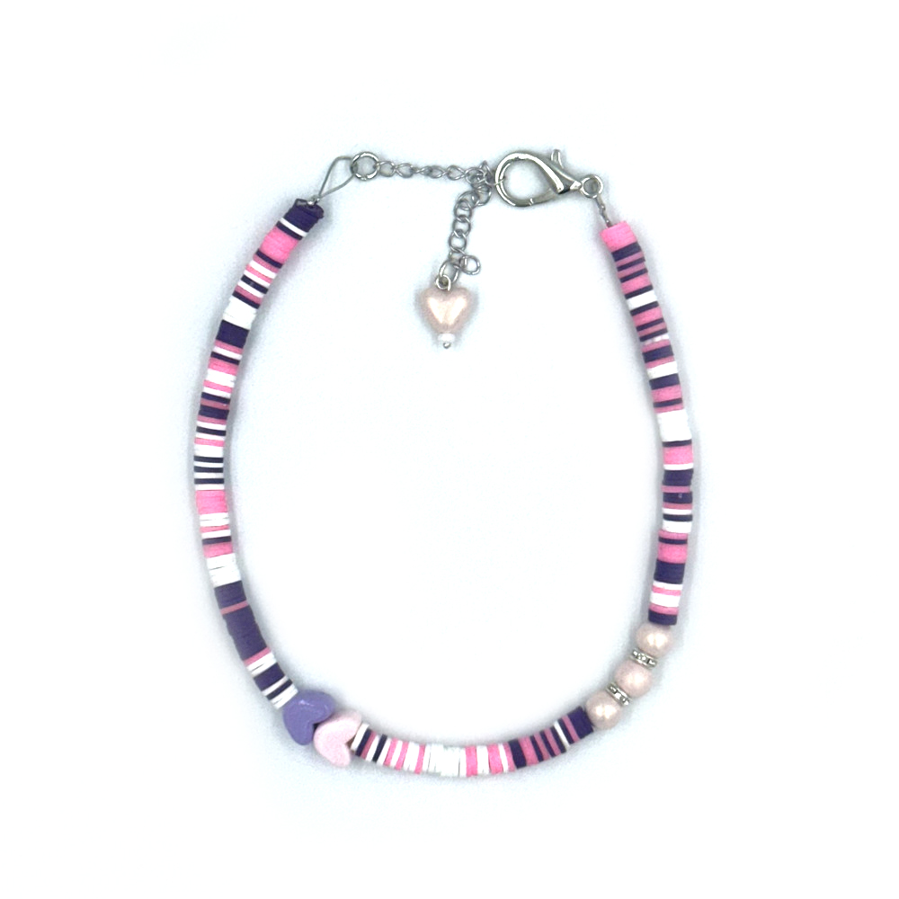 Κολιέ σε ροζ-μωβ χρώμα με στρας και πλαστικό στοιχείο