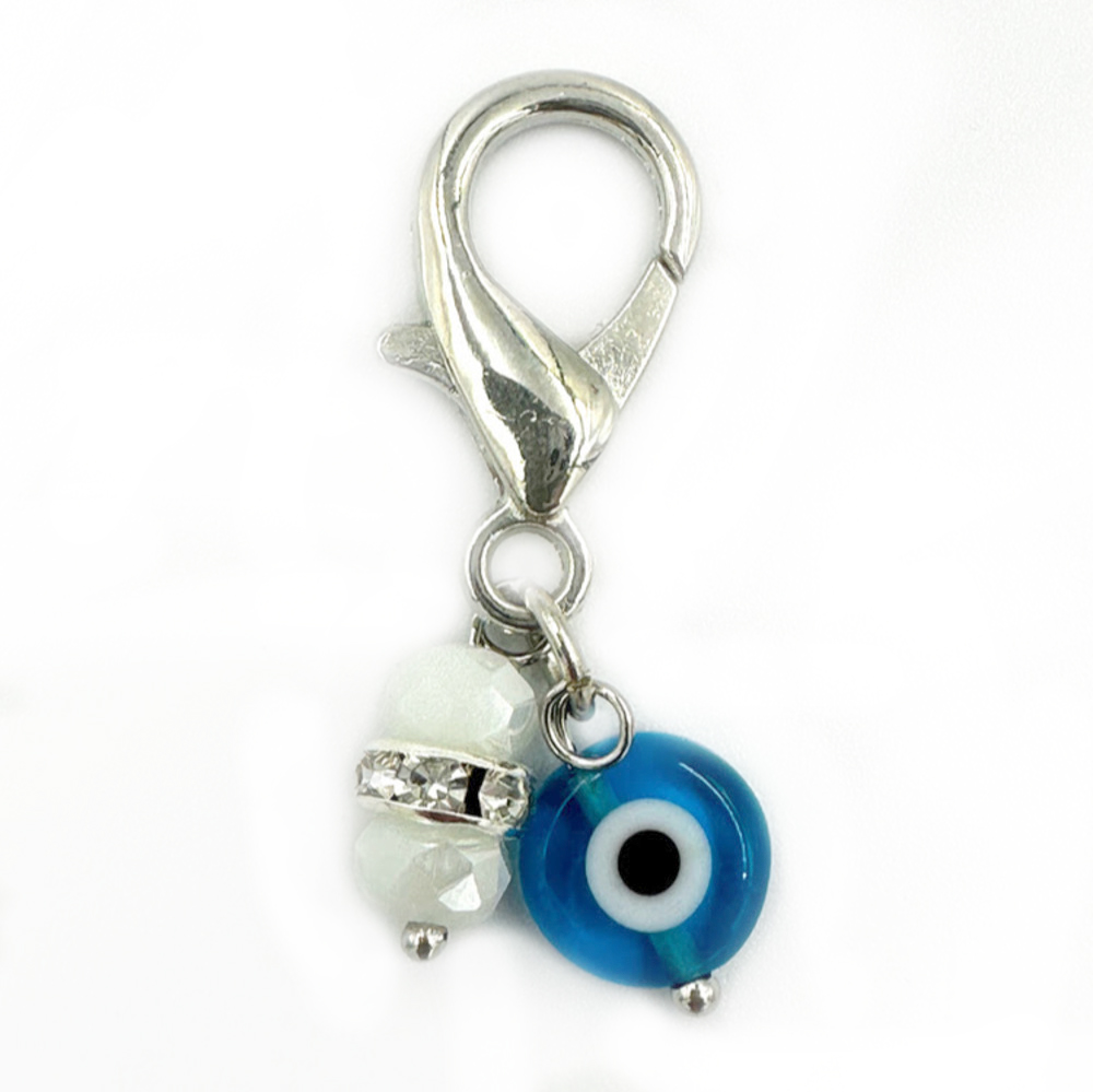 Μπλέ ματάκι με λευκές χάντρες και στρας