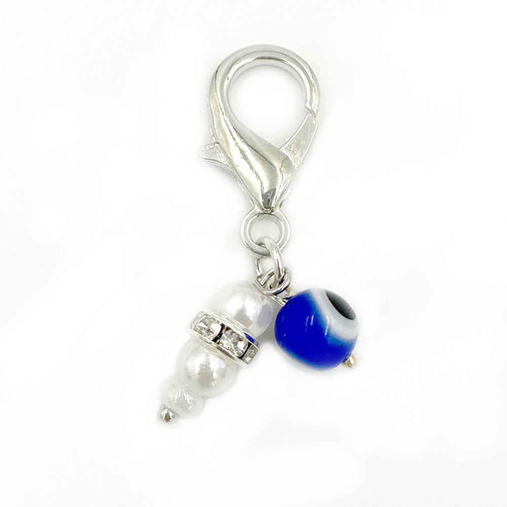 Μπλέ ματάκι με λευκές χάντρες και στρας