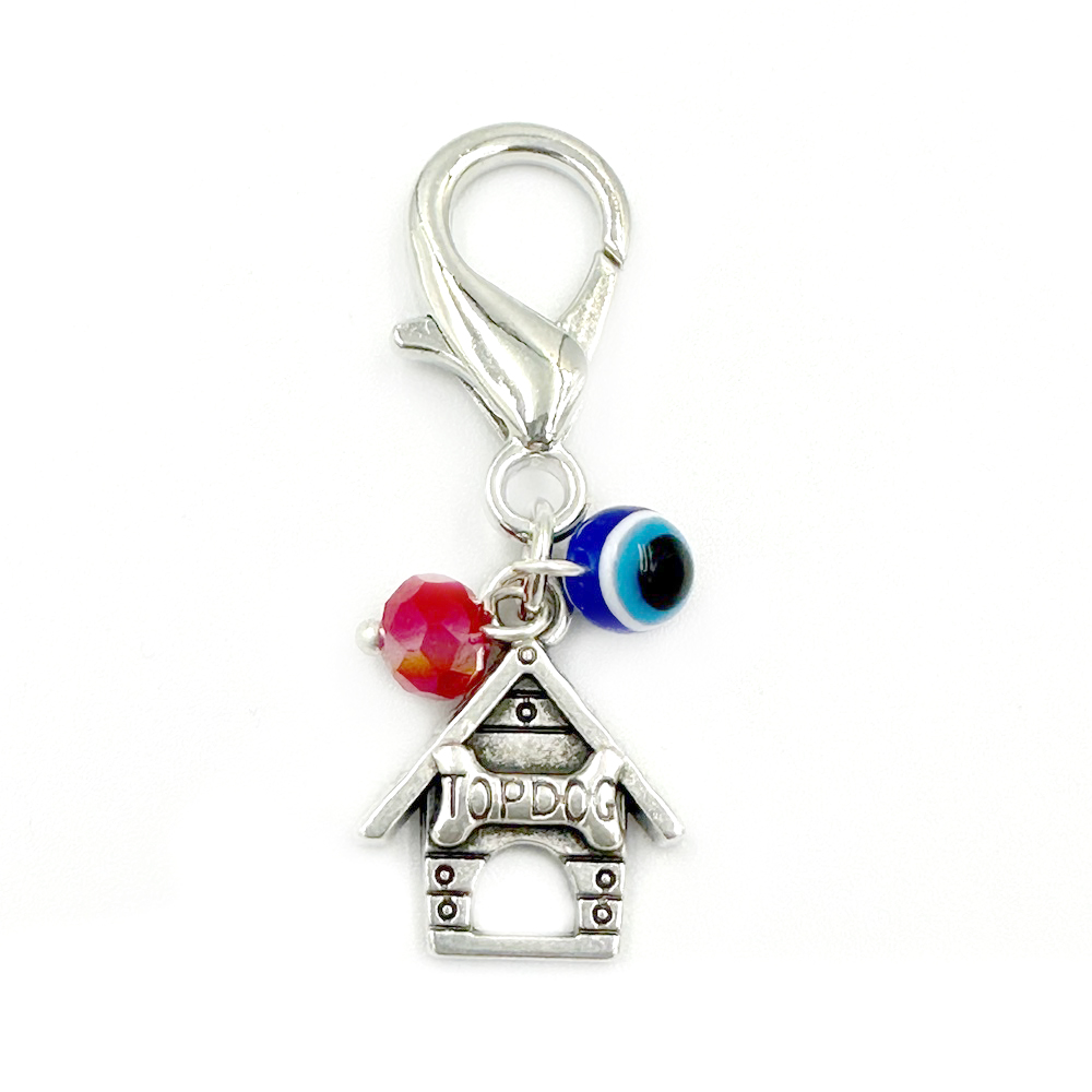 Μπλέ ματάκι στρογγυλό με κόκκινη χάντρα και μεταλλικό μοτίφ σε ασημί χρώμα