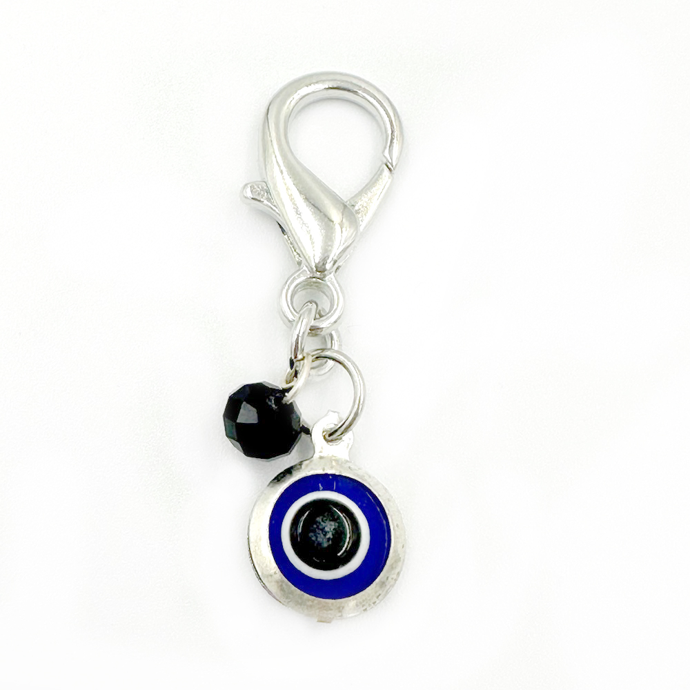Στρογγυλό μεταλλικό ματάκι με μαύρη χάντρα
