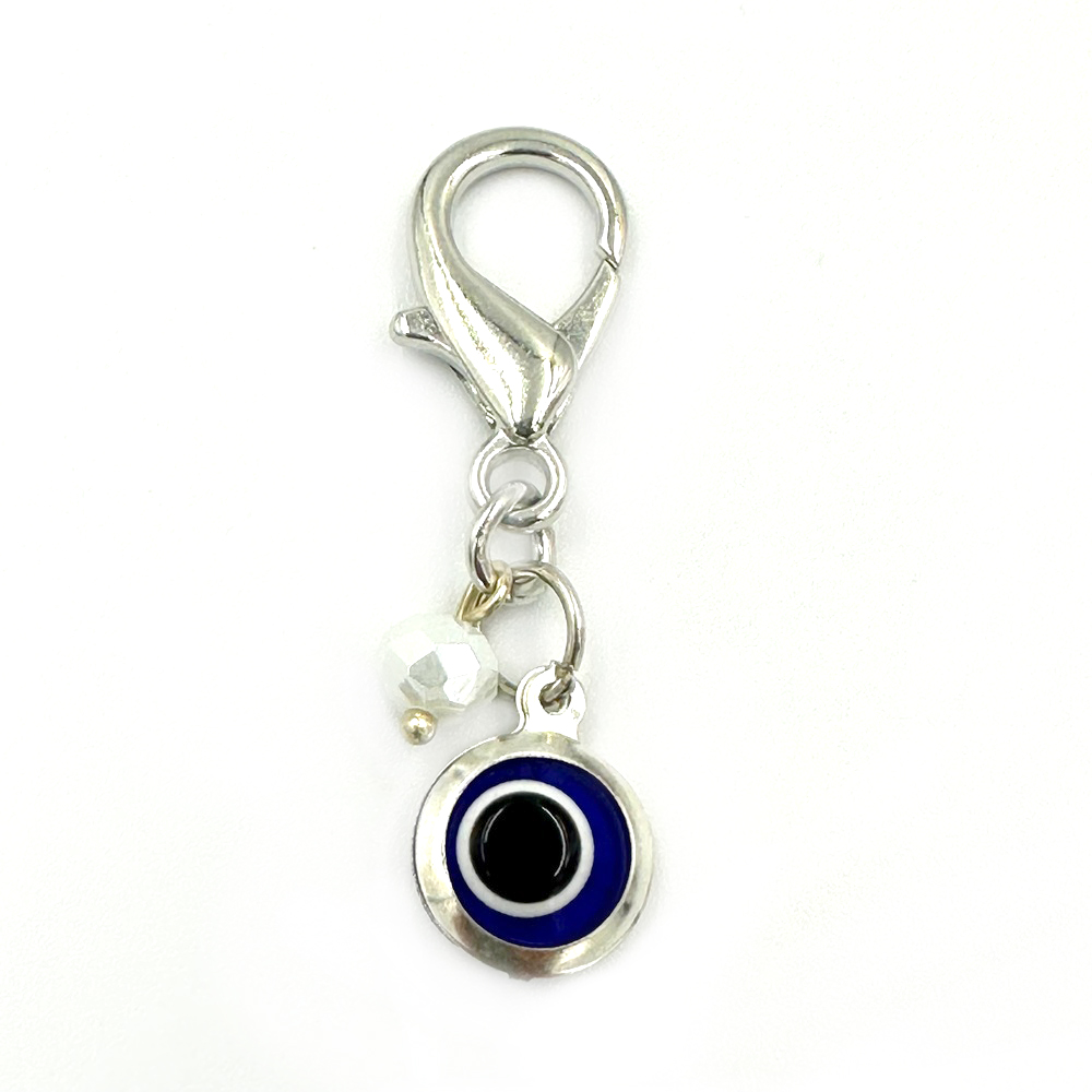 Στρογγυλό μεταλλικό ματάκι με λευκή χάντρα