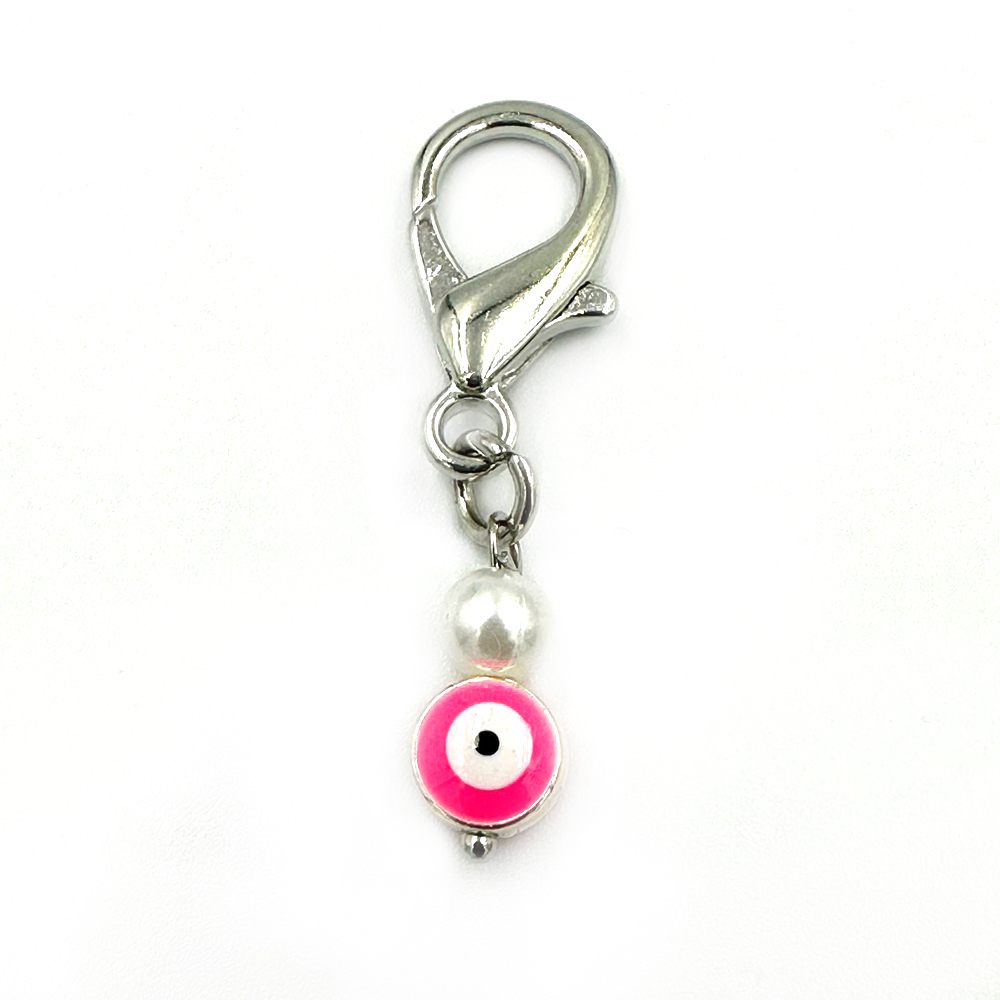 Στρογγυλό ρόζ ματάκι με λευκή χάντρα