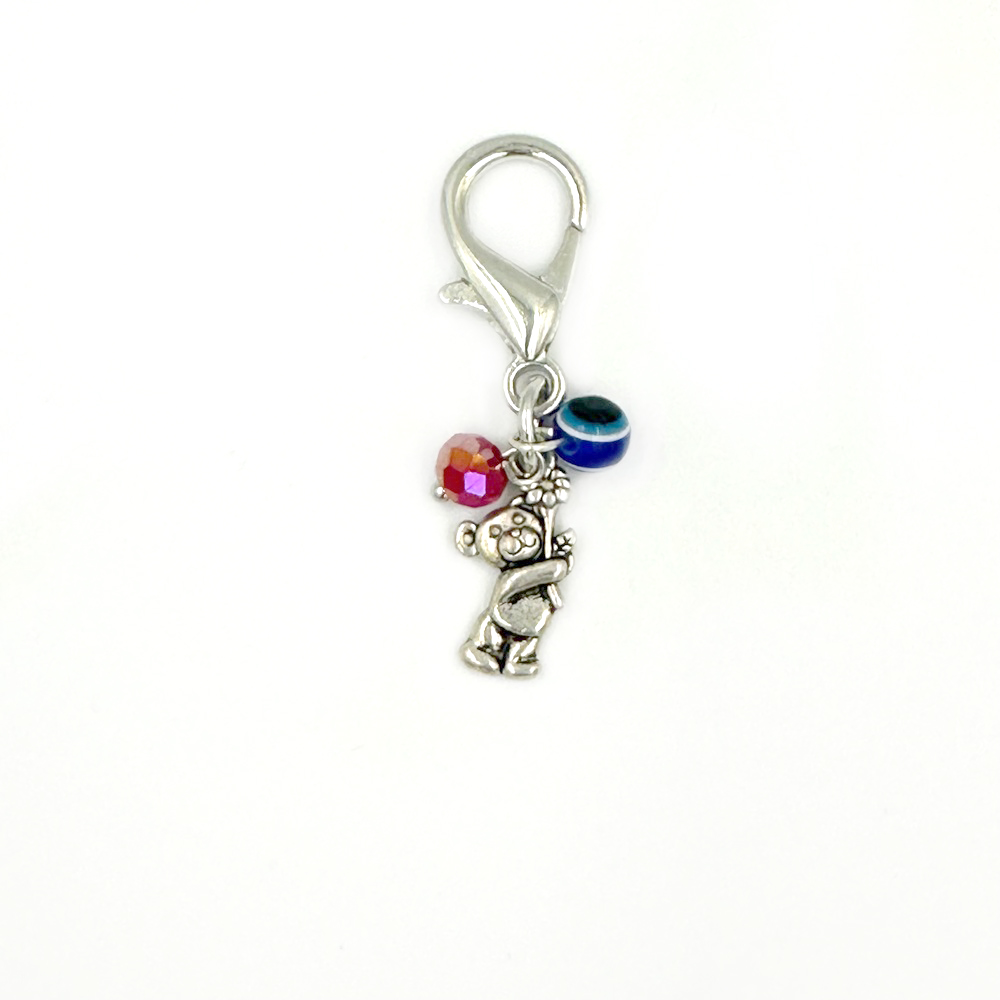 Μπλέ ματάκι με μεταλλικό μοτίφ και κόκκινη χάντρα σε ασημί χρώμα