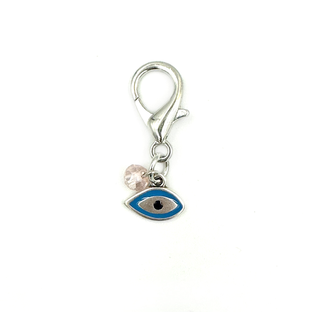 Μπλέ ματάκι με μεταλλικό μοτίφ και σομόν χάντρα