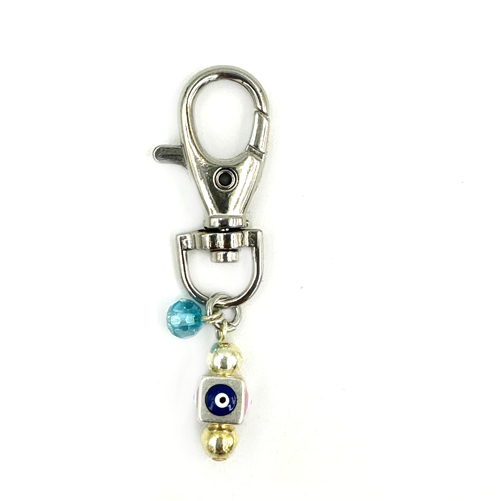 Τετράγωνο ματάκι με μπλέ και χρυσές χάντρες