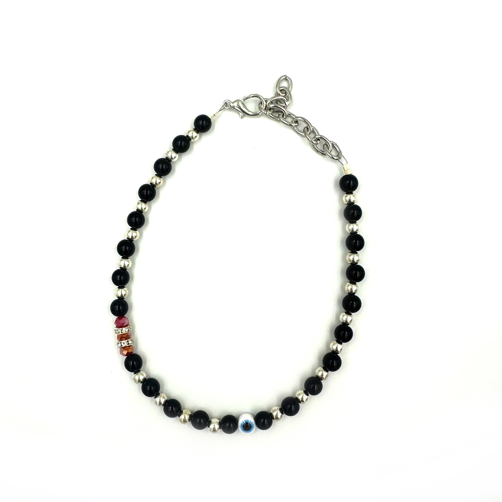 Κολιέ με 8mm χάντρα, στράς και πλαστικό στοιχείο