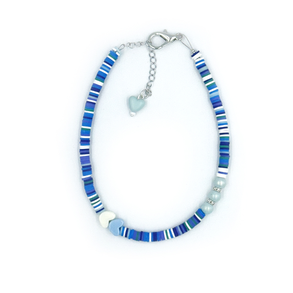 Κολιέ σε μπλέ-άσπρο χρώμα με στρας και πλαστικό στοιχείο
