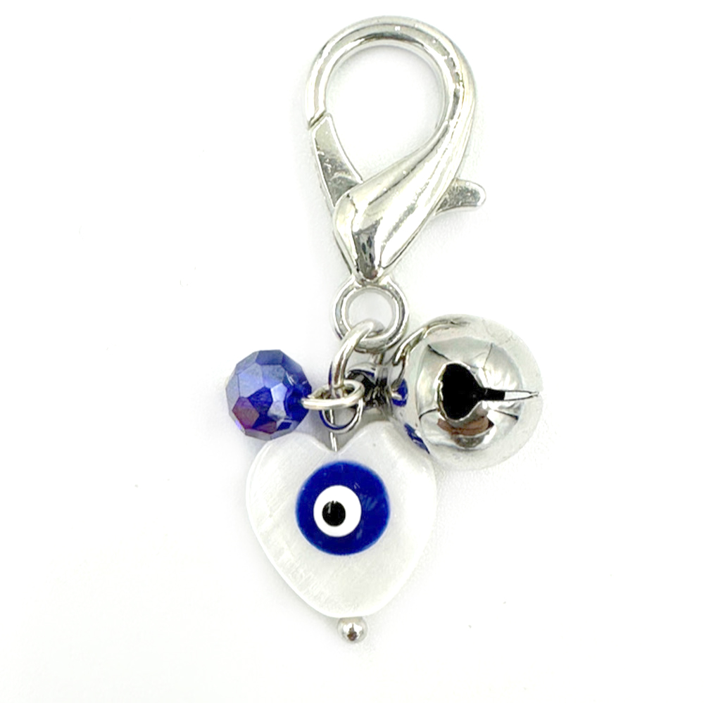 Μπλέ ματάκι καρδιά με μπλέ χάντρα και κουδουνάκι