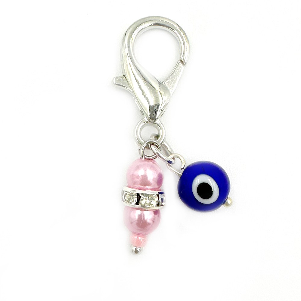 Μπλέ ματάκι με ροζ χάντρες και στρας