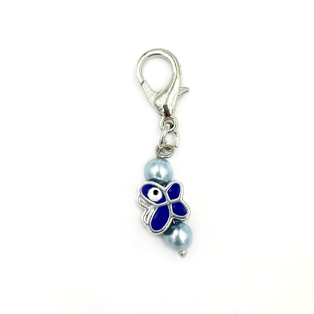 Μπλέ ματάκι πεταλούδα με γαλάζιες χάντρες
