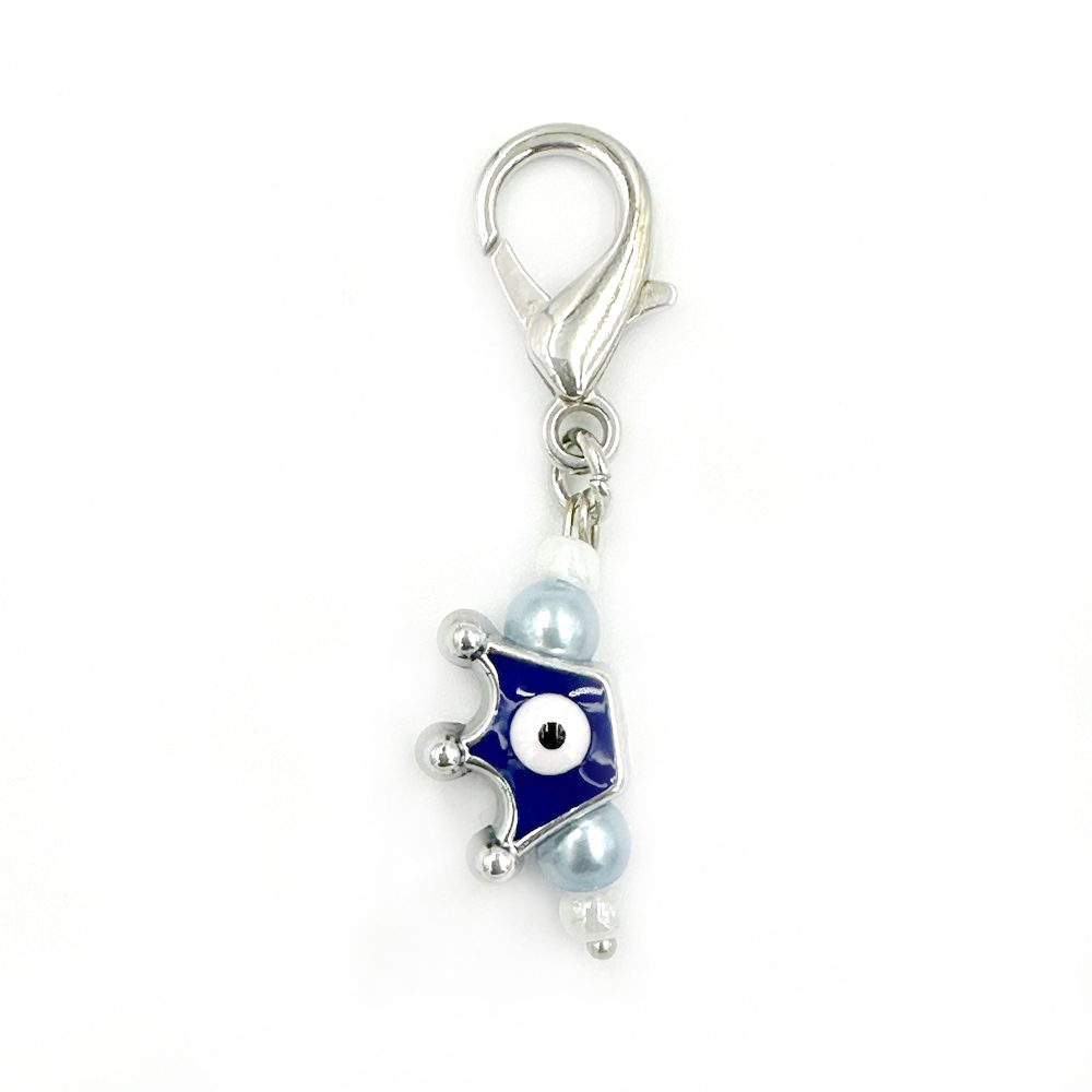 Μπλέ ματάκι κορώνα με γαλάζιες και λευκές χάντρες