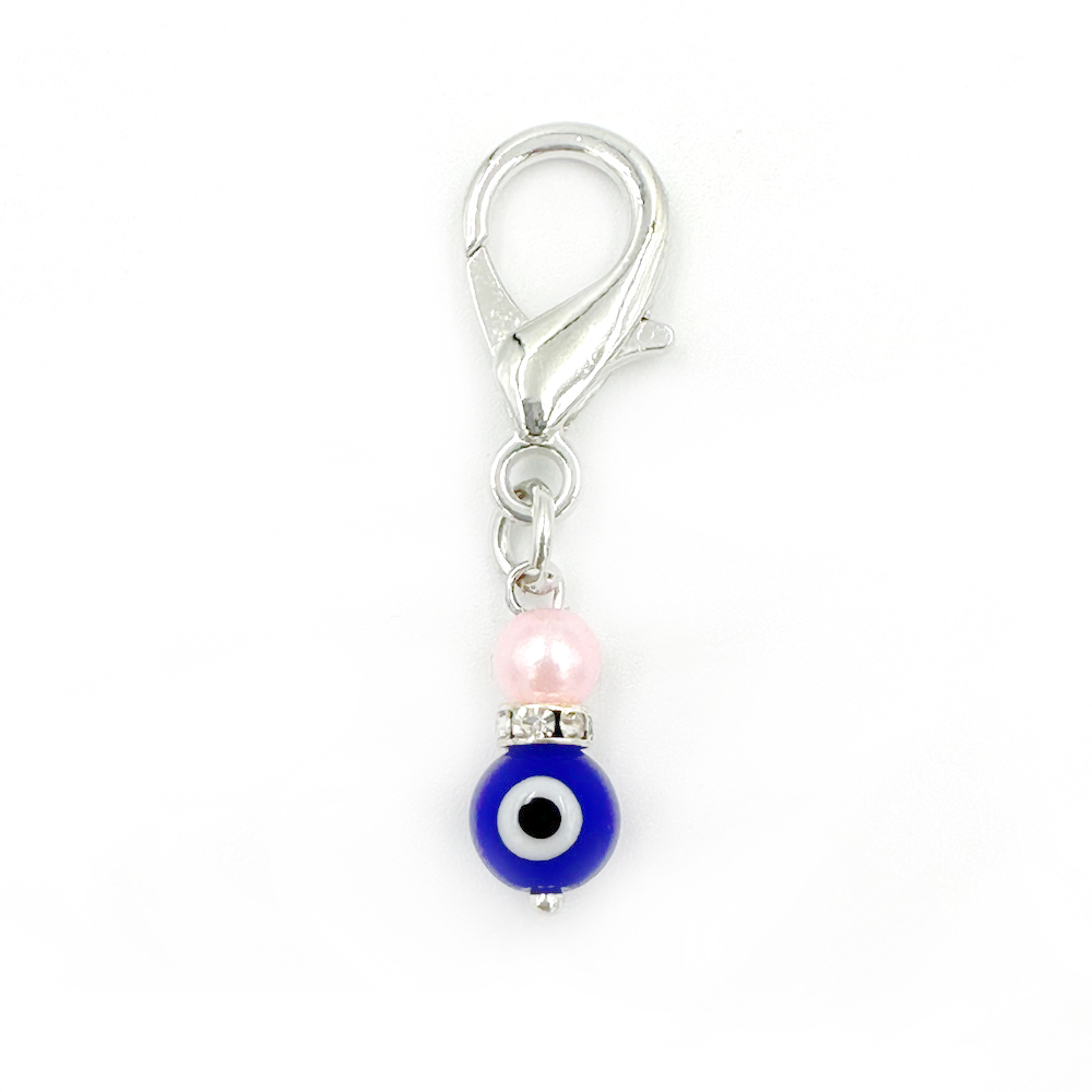 Μπλέ ματάκι με ροζ χάντρα και στρας
