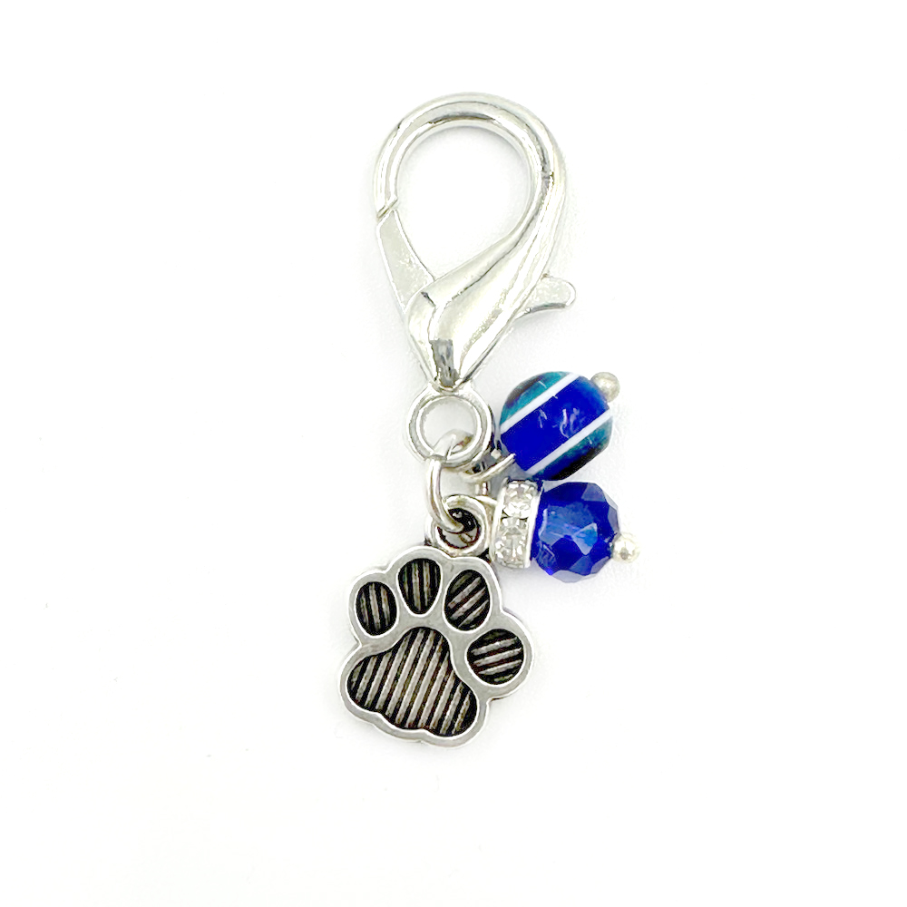 Μπλέ ματάκι στρογγυλό με μπλέ χάντρα στρας και μεταλλικό μοτίφ