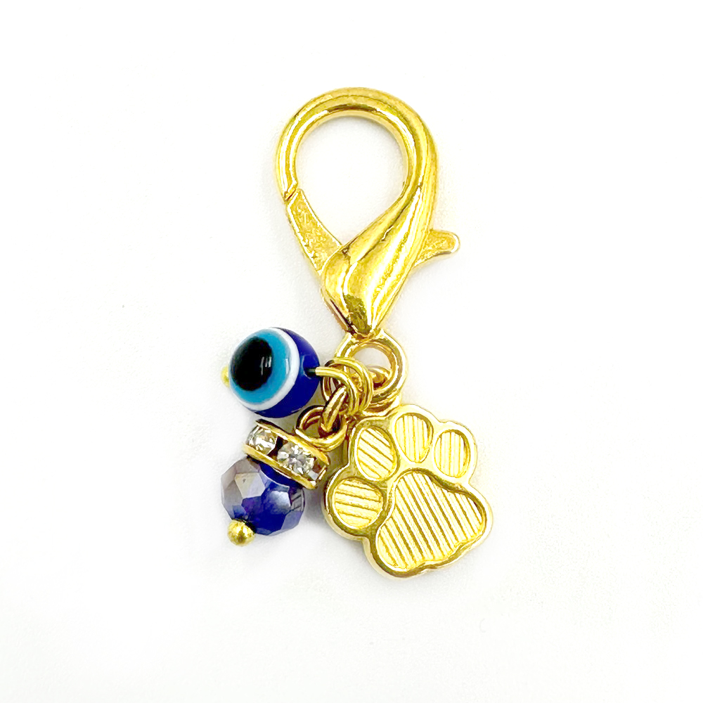 Μπλέ ματάκι στρογγυλό με μπλέ χάντρα στρας και μεταλλικό μοτίφ σε χρυσό χρώμα