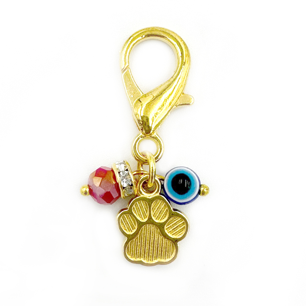 Μπλέ ματάκι στρογγυλό με κόκκινη χάντρα στρας και μεταλλικό μοτίφ σε χρυσό χρώμα
