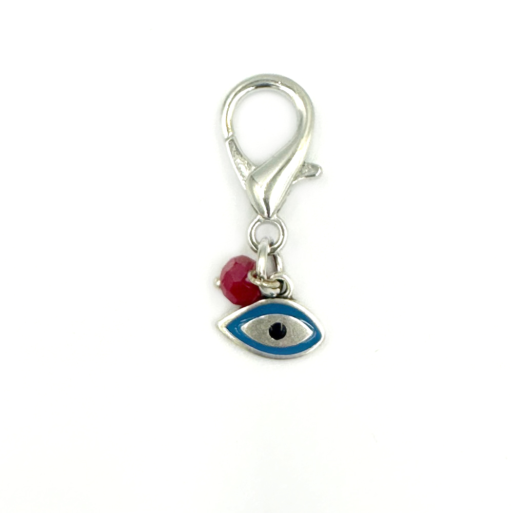 Μπλέ ματάκι με μεταλλικό μοτίφ και κόκκινη χάντρα
